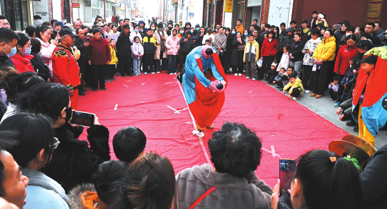 代州古城將軍府前的二鬼跌跤表演。王晉東攝