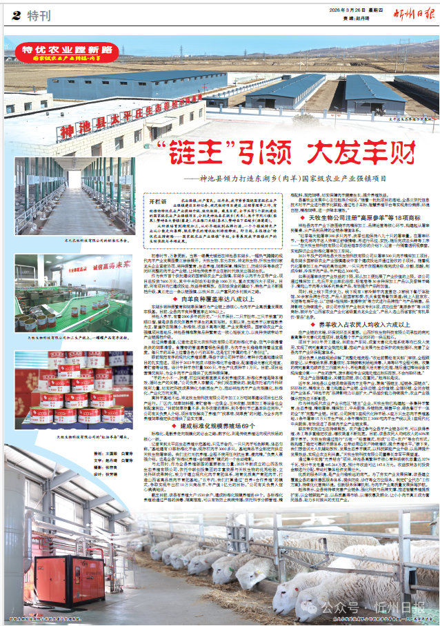 與此同時,作為全縣養(yǎng)殖版圖的重要新生力量,2025年新成立的山西圣牧生態(tài)養(yǎng)殖有限公司,依托中聯(lián)創(chuàng)投集團的豐富資源與天牧生物的優(yōu)秀經驗,立足科研成果轉化,致力于建立現代化肉羊育肥體系、培育優(yōu)質高產育肥肉羊,打造山西省高品質肉羊育肥基地?!拔迥陜?,我們打算通過‘自養(yǎng)+合作養(yǎng)殖’的模式,爭取實現年出欄10萬只商品羊、年產值1億元的目標?!惫居嘘P負責人信心滿滿地說。