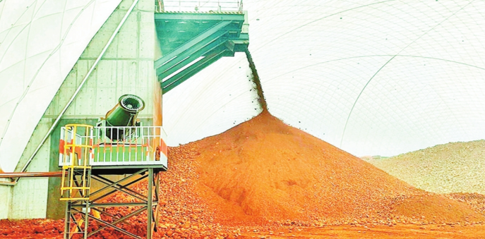 4月15日,4號氣膜倉內正在進行自動化礦石倒運作業(yè),同步開啟霧炮機降塵。 高舒軍攝
