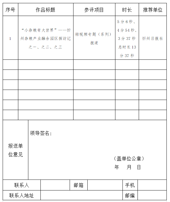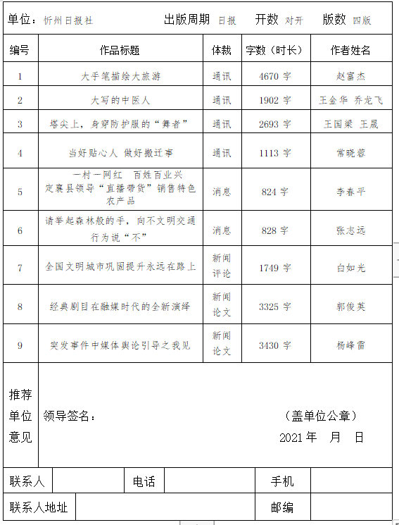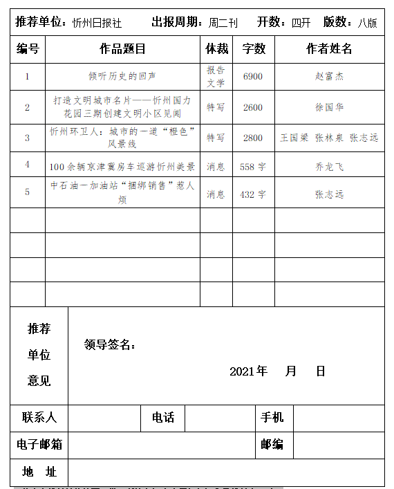 山西新聞獎(jiǎng)報(bào)送作品目錄