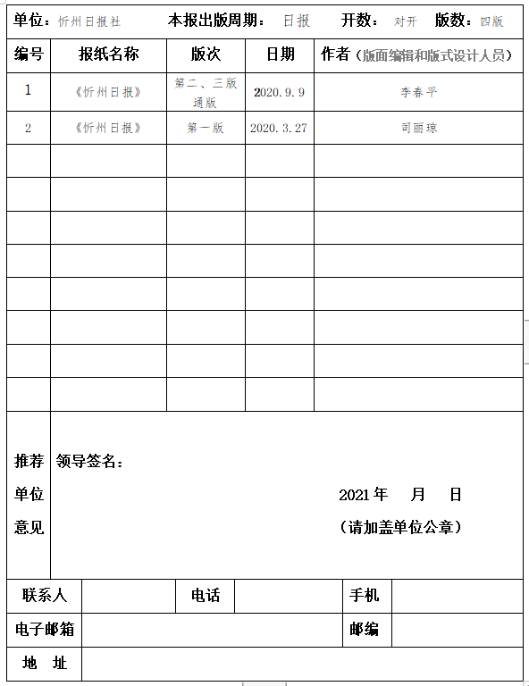 經(jīng)忻州日報(bào)社編委會(huì)研究決定,以下作品擬推薦申評第三十屆山西新聞獎(jiǎng),現(xiàn)予以公示。有反對意見者,請將反對意見書面報(bào)至統(tǒng)籌部。