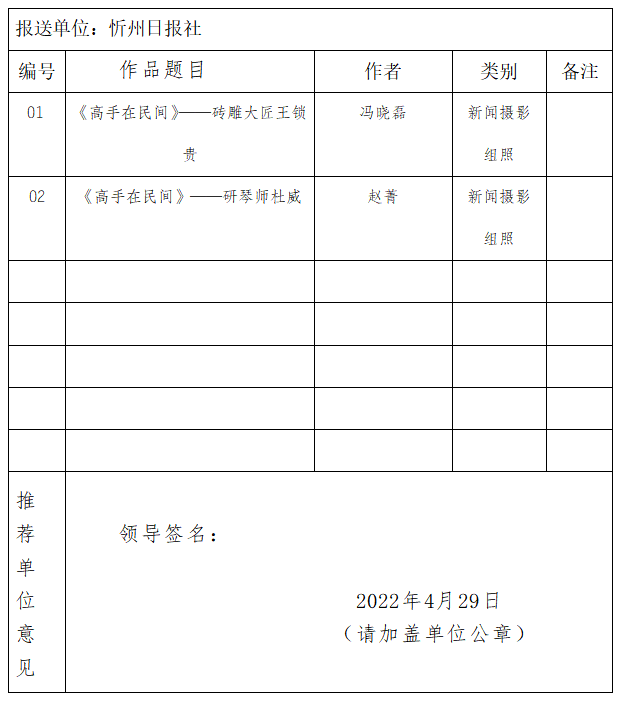 經(jīng)忻州日?qǐng)?bào)社編委會(huì)研究決定,以下作品擬推薦申評(píng)第三十一屆山西新聞獎(jiǎng),現(xiàn)予以公示。有反對(duì)意見者,請(qǐng)將反對(duì)意見書面報(bào)至統(tǒng)籌部。