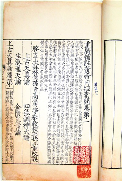 明嘉靖二十九年重廣補(bǔ)注黃帝內(nèi)經(jīng)素問(wèn)二十四卷,甘肅省圖書館藏?!饵S帝內(nèi)經(jīng)》提出對(duì)瘟疫要早發(fā)現(xiàn)早治療,治療后防止復(fù)發(fā)。