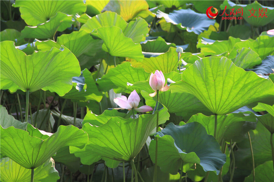 接天蓮葉無窮碧。人民網(wǎng) 孟麗媛攝 夏季是最佳賞荷期,清晨是最佳賞荷時(shí)。此時(shí)晨露未干、朝陽初暉,荷花不僅更顯妍麗,香氣也更清雅動(dòng)人,一如宋代詩人楊萬里《清曉湖上》所述:“都將月露清涼氣,并作清晨一噴香?!?/span> 詠荷:中通外直,不蔓不枝 觀荷吟詩,古人詩文記載著荷花之美。除了“別樣紅”,荷花還有粉、白二色,金蓮、碧蓮甚是少見。其中,“白者香,紅者艷,千葉者不結(jié)實(shí)”。雙生花“并蒂蓮”、一蒂三花“品字荷”、兩次開花的“重臺(tái)蓮”、“夜布晝卷”的夜舒荷等荷中珍品因稀有而常被視為祥兆。