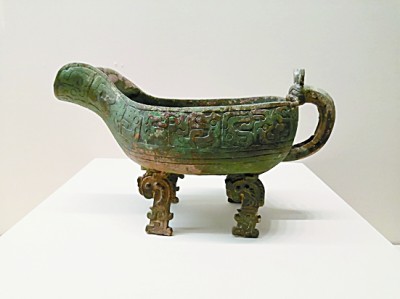 陜西劉家洼出土的青銅匜(音儀,盥器,用之倒水洗手)本報(bào)記者 李韻攝/光明圖片