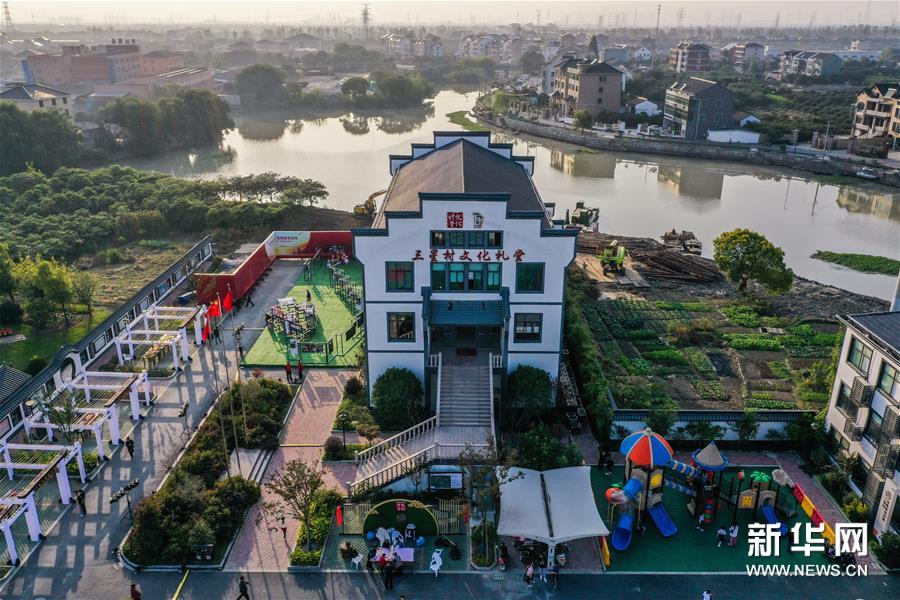 11月7日,在杭州市余杭區(qū)塘棲鎮(zhèn)三星村文化禮堂前,村民在展示傳統(tǒng)技藝“翻絲綿”(無人機(jī)照片)。當(dāng)日,浙江省杭州市余杭區(qū)農(nóng)村文化禮堂“百村千場”聯(lián)盟走親在塘棲鎮(zhèn)三星村文化禮堂正式啟動(dòng)?;顒?dòng)現(xiàn)場組織了米塑、滾燈、鰲魚燈、高蹺、掮爐子等余杭非遺技藝走親展示以及塘棲鎮(zhèn)禮堂聯(lián)盟原創(chuàng)節(jié)目展演。 從2020年3月開始,浙江省杭州市余杭區(qū)塘棲鎮(zhèn)以“小康路上我們一起曬幸?!睘橹黝},啟動(dòng)美麗鄉(xiāng)村禮堂文化節(jié)活動(dòng),開展“幸福接力賽”、文化“云”講課等一系列基層文化活動(dòng)。塘棲鎮(zhèn)還創(chuàng)新推進(jìn)了“禮堂聯(lián)盟”結(jié)對互促工作,與區(qū)級文化團(tuán)隊(duì)結(jié)對共建,使鄉(xiāng)村文化禮堂“活”起來,全面提升鄉(xiāng)村百姓的幸福感。新華社記者 徐昱 攝