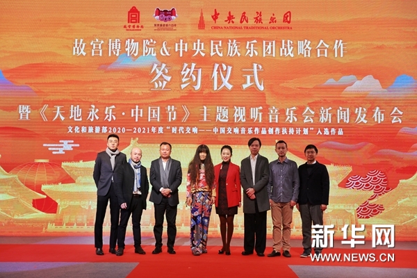簽約儀式上,現(xiàn)場嘉賓共同啟動(dòng)即將上演的《天地永樂·中國節(jié)》主題視聽音樂會(huì)。