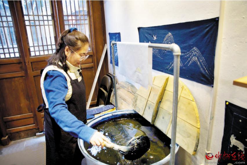 “染缸是我最寶貝的東西。我對它就像對待孩子,不能冷著、熱著、累著、餓著?!壁w慧說,天然染料的缸需要“養(yǎng)”,冬天冷了烤暖氣,夏天熱了吹空調(diào),還要不時添加?xùn)|西,“這個缸我‘養(yǎng)’了四年多,叫它‘藍寶寶’?!?/span>