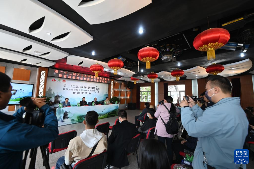 當(dāng)日,第二十二屆八大處中國園林茶文化節(jié)暨首屆福建柘榮高山白茶文化周在北京舉行新聞發(fā)布會。據(jù)介紹,該活動將于4月28日至5月3日在北京八大處公園舉行。期間,福建省柘榮縣多家茶企業(yè)將在八大處公園內(nèi)設(shè)臺擺桌,沏茶迎客,供游客品嘗高山白茶,感受白茶特有文化。(新華社記者 李俊東 攝)