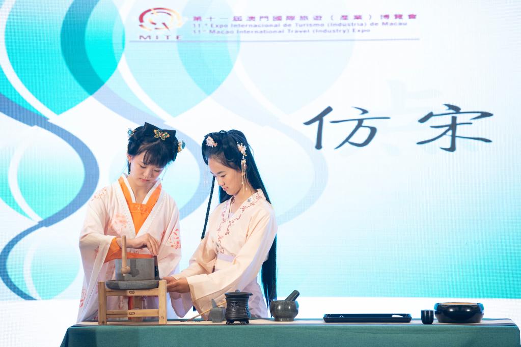6月30日,表演者在澳門“茶和天下·雅集”暨茶文化之旅主題推廣活動(dòng)上展示仿宋點(diǎn)茶。新華社記者 張金加 攝