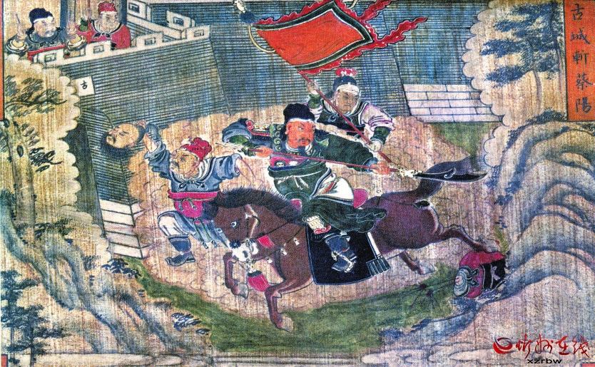 五臺山塔院寺伽藍(lán)殿清代壁畫——古城斬蔡陽圖
