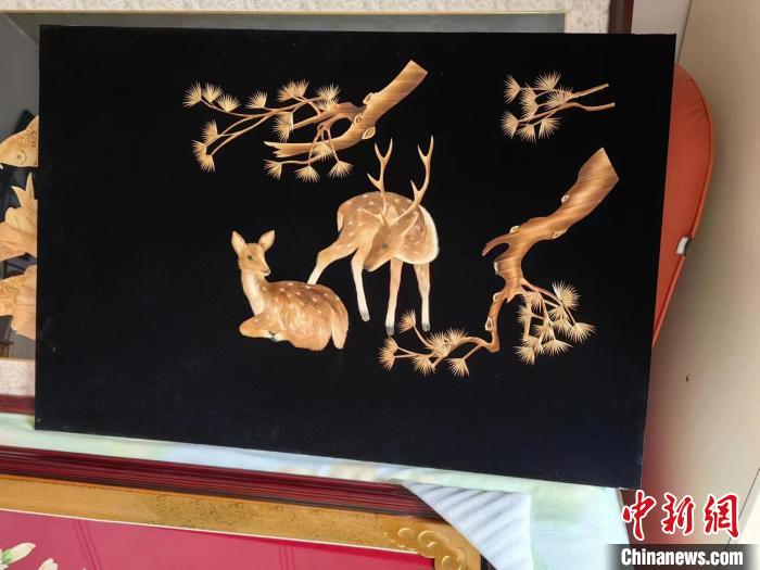 白鴻玲制作的麥稈畫。傅海青攝