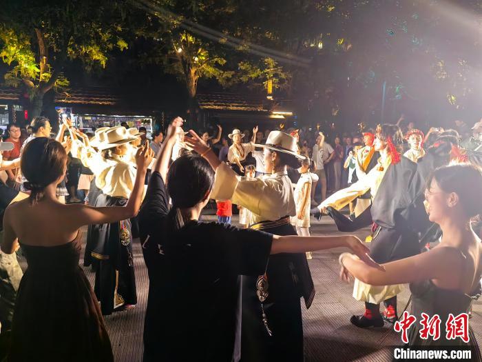 值得一提的是,為了讓觀眾更好地感受橫斷秘境的特色,開幕式當(dāng)晚,甘孜州木雅文化藝術(shù)博覽中心的演員們繼續(xù)在中國刀剪劍博物館、中國傘博物館的運(yùn)河入口處,進(jìn)行鍋莊舞表演,帶領(lǐng)民眾共同感受鍋莊舞這一國家級(jí)非遺的魅力。