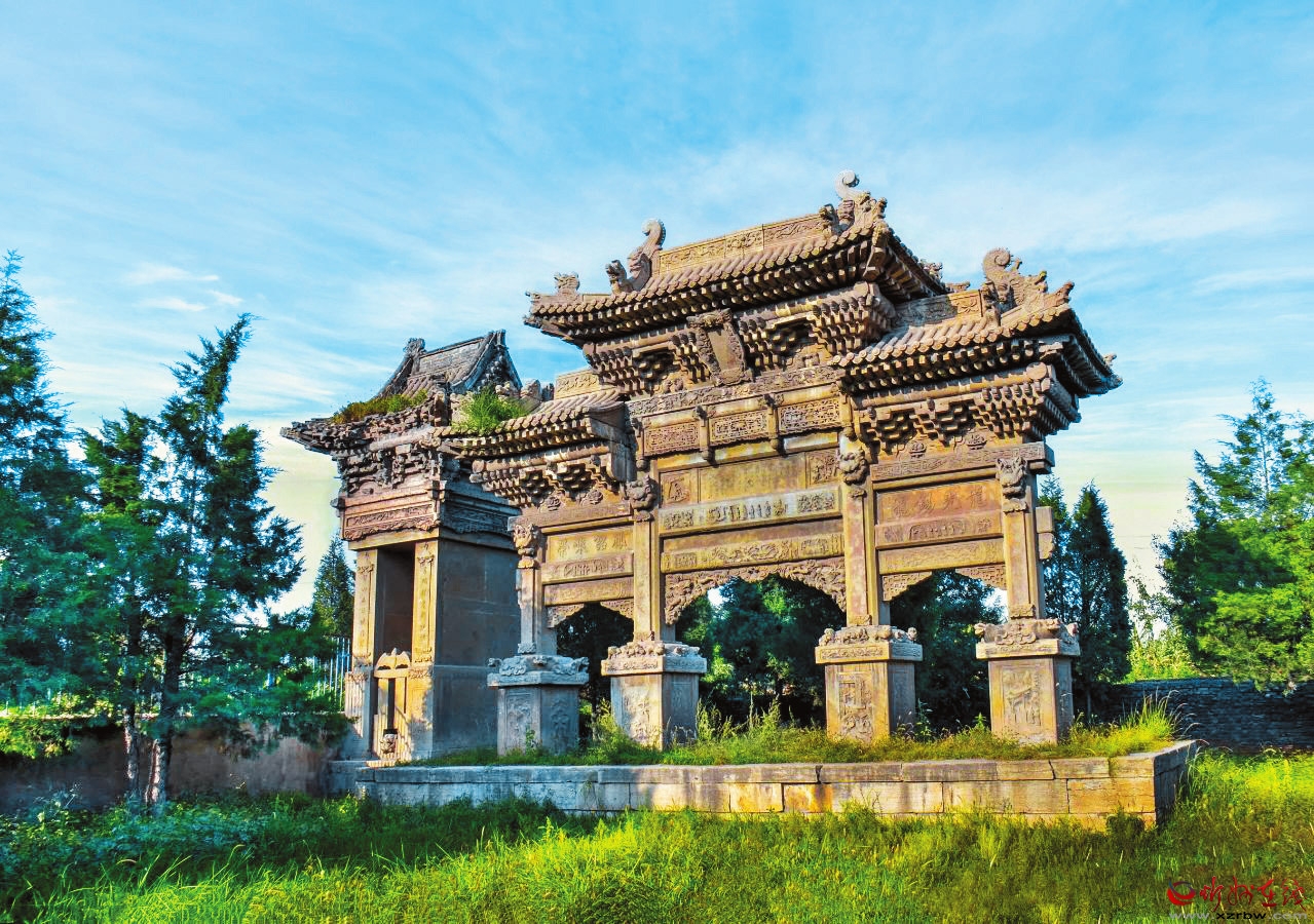 坐落于村中的朱氏牌樓是晚清中儀大夫、陜西延榆綏兵道加鹽運(yùn)使武訪疇為其母所修的節(jié)孝牌坊。它不僅見證了朱氏家族的輝煌歷史,也反映了當(dāng)時(shí)社會(huì)的文化風(fēng)貌,承載著豐富的歷史文化內(nèi)涵,為第八批全國(guó)重點(diǎn)文物保護(hù)單位。牌樓有主坊和配坊兩座,主坊矗立在村內(nèi)南街,面寬三間,四柱三樓,重檐歇山頂,高近11米、寬15米。欄板內(nèi)剔底雕刻成一幅幅人物故事圖案,霸王柱間鏤雕丹鳳朝陽(yáng)。匾形走馬板上書“柏舟矢志”“竹柏流芳”各四字。牌坊下檐明間置匾一塊,書“圣旨”二字,兩次間匾書分別為“懿范”“徽音”。配坊在村南,高8米有余,四柱三門,單檐歇山頂,規(guī)模略小,造型風(fēng)格與主坊一樣,皆為石雕藝術(shù)精品。