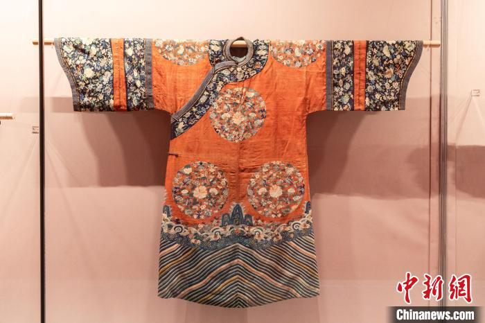 圖為清代緙絲紅地八團(tuán)花卉紋吉服袍。受訪者供圖 北京服裝學(xué)院民族服飾博物館館長(zhǎng)田輝介紹,中國(guó)傳統(tǒng)袍服造型簡(jiǎn)練、款式大方,自先秦時(shí)期已有使用,漢代以后服用更加廣泛。在中國(guó)廣袤的土地上,滿族、蒙古族、藏族、羌族等都有穿著長(zhǎng)袍長(zhǎng)衫的習(xí)俗。 “這件吉服袍是清代滿漢服飾文化交融的重要見證:滿族作為北方游牧民族,為適應(yīng)騎射之需,其傳統(tǒng)袍服多為‘緊身窄袖’樣式,清代中后期,受到漢族女裝寬身博袖造型影響,滿族宮廷女性吉服袍的袖筒及馬蹄袖口變得更加肥闊?!碧镙x說(shuō)。 在“衣冠流傳”展廳內(nèi),一件經(jīng)過(guò)修復(fù)的“元代龍鳳紋織金錦辮線袍”同樣留存文化融合的痕跡。 田輝介紹,辮線袍是13世紀(jì)至14世紀(jì)蒙古社會(huì)流行的一種男袍,因腰部釘縫的數(shù)百條辮線而得名。此件元代辮線袍采用“交領(lǐng)右衽”設(shè)計(jì),袍袖細(xì)長(zhǎng)且袖口緊窄,腰部合體且縫有辮線細(xì)褶,并有暗擺式后開衩,在結(jié)構(gòu)上具備上緊下松的特征,體現(xiàn)了其作為游牧民族騎射服裝的功能性特質(zhì)。 “辮線袍的龍、鳳、牡丹等衣身紋樣中融入傳統(tǒng)吉祥文化的主題元素,體現(xiàn)了中華傳統(tǒng)服飾的多元發(fā)展?!碧镙x說(shuō)。