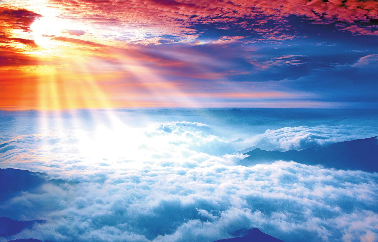 在海拔2796米的五臺(tái)山東臺(tái)頂,居高望遠(yuǎn),日出景象更加浩瀚壯闊,朝霞滿天,萬道金光射向大地,云海、雪峰、金殿、金像相互輝映。