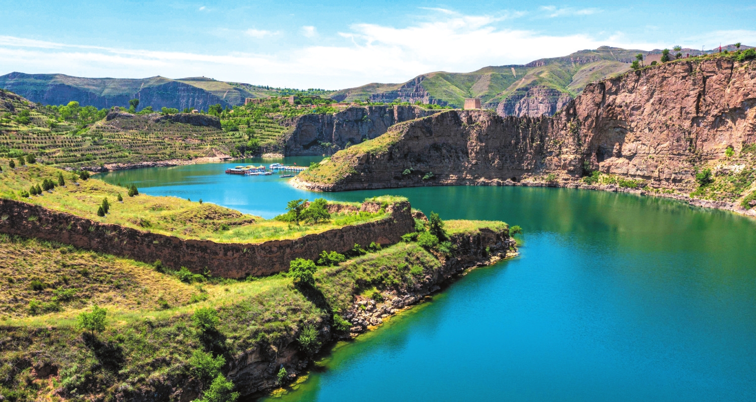 從磧口繼續(xù)下行,走過石樓灣、乾坤灣,黃河依舊清澈不染。站在山上看下去,深深峽谷里,黃河宛若一條綠色緞帶,溫柔盤旋于峽谷中。歷史上,黃河奔騰咆哮,穿高原,裂峽谷,卷泥走石,何其壯也!而今變?yōu)橐缓忧辶?,委婉如同一個(gè)小姑娘,這情景,讓人感覺有幾分夢(mèng)幻。