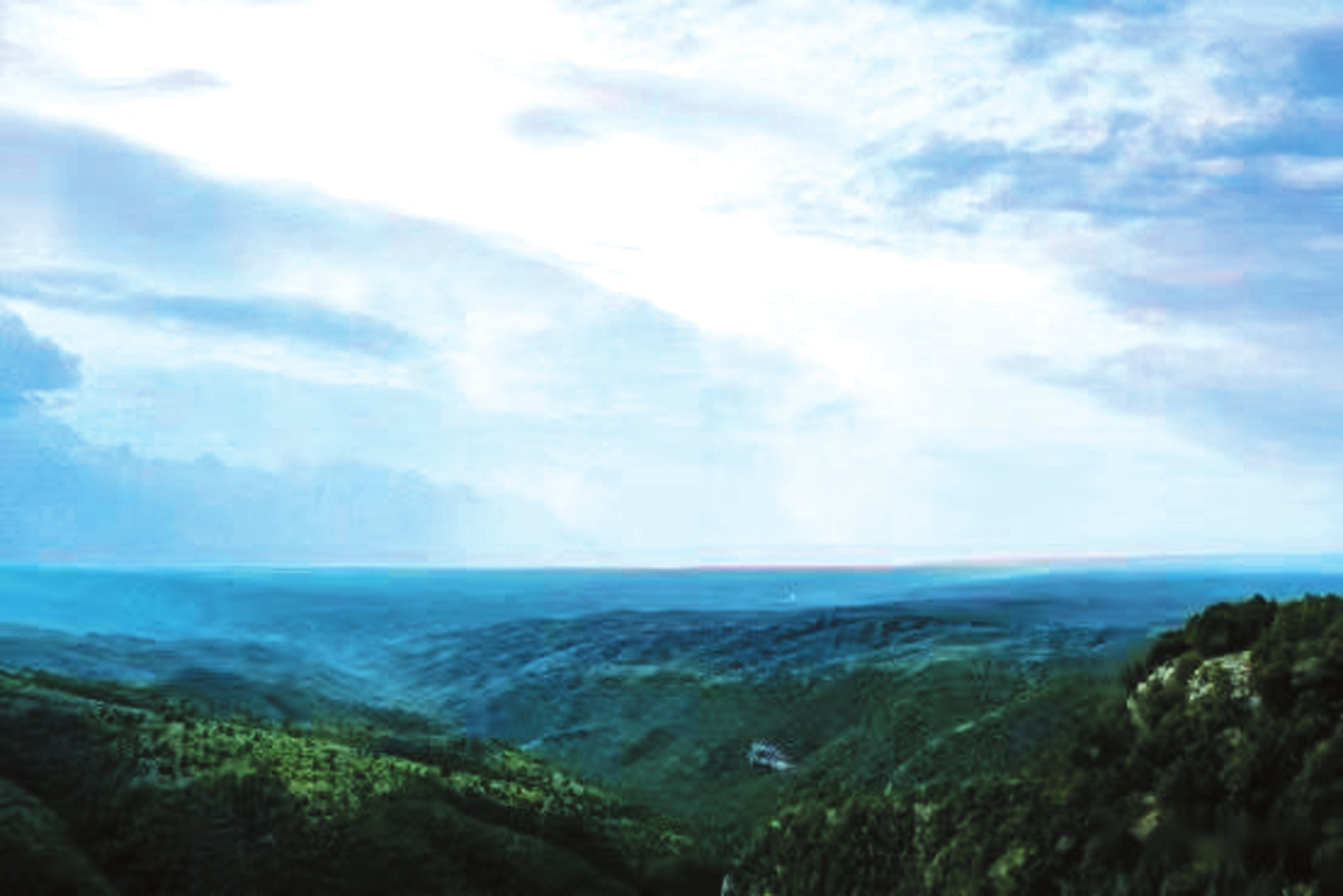 立于井油山巔,風(fēng)光盡收眼底。遠(yuǎn)山如黛,似畫師以淡墨隨性揮灑;云霧纏繞,像仙人隨手拋下的素紗。風(fēng)自山腳徐徐而來,攜著青草的鮮嫩與松針的醇厚,穿入肺腑。每一次呼吸都如飲甘露,令人心神一振,旅途的疲憊瞬間消散。八月的山澗,細(xì)流潺潺,其聲悅耳。日光透過枝葉縫隙,碎成點(diǎn)點(diǎn)金箔,在山坳間跳躍,為滿山濃綠注入了靈動(dòng)氣息。密林深處,時(shí)而傳來野雞、鷓鴣的清啼,劃破山間靜謐;時(shí)而有野兔、松鼠竄動(dòng)的窸窣聲,讓整座山都透著勃勃生機(jī)。