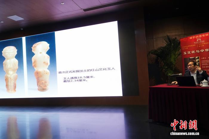 2月22日,中國(guó)考古博物館春節(jié)講座專(zhuān)場(chǎng),劉國(guó)祥研究員作“玉文化與中華文明”主題學(xué)術(shù)報(bào)告,介紹紅山文化玉人。中新網(wǎng)記者 孫自法 攝