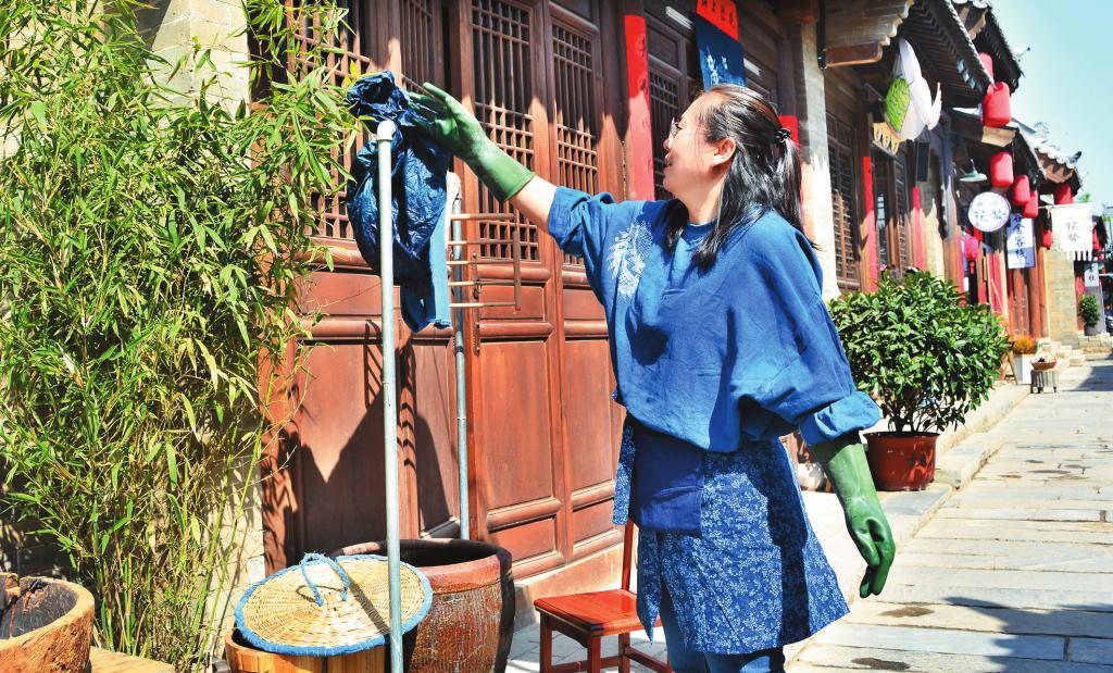 趙慧說,古城文創(chuàng)街的店鋪給了手工藝人更多的可能性和幸福感。以前大多是因為熱愛,自己四處找了染材做著玩,身邊的朋友們口口相傳,遇見喜歡的就收走,現(xiàn)在有了古城的平臺,更多的人認識了草木染,更多喜歡傳統(tǒng)文化、講究生活品質的朋友們愛上了這樣的作品。趙慧守著小店,染染布、縫縫包、種種花、喝喝茶,把自己的熱愛和鉆研一顏一色染進布里,一針一線縫到作品中。通過那些有趣和有創(chuàng)意的作品,她覺得生活更加溫馨了。