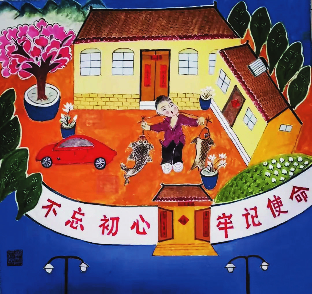 她們的作品,取材于農(nóng)村、農(nóng)業(yè)、農(nóng)民生活,或表現(xiàn)美好的生活場(chǎng)景,或反映豐收的喜悅,或體現(xiàn)鄉(xiāng)愁,在表現(xiàn)手法上采用大膽的夸張、變形,巧用艷麗的色彩,人物刻畫細(xì)致入微,內(nèi)心喜悅躍然紙上,富有鮮明的地方特色。綜觀她們的作品,無(wú)不展現(xiàn)了社會(huì)主義新農(nóng)村在新時(shí)代的新變化、新風(fēng)貌,在傳承和弘揚(yáng)代縣文化、引領(lǐng)社會(huì)主義精神文明建設(shè)方面做出了出色的嘗試與實(shí)踐。