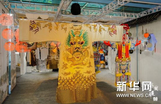 “風(fēng)·華”版塊,展示了最地道的金華民藝之風(fēng)。以婺劇戲服為中心,聯(lián)袂浦江剪紙、浦江麥稈剪貼、金華剪紙、東陽(yáng)針刺無(wú)骨花燈等非遺項(xiàng)目,共同營(yíng)造一方獨(dú)居金華特色的“光影幻戲空間”。金華婺劇是國(guó)家級(jí)非遺項(xiàng)目、金華文化金名片,享譽(yù)海內(nèi)外,前不久還被列入首批“浙江省文化印記”,精致華美的婺劇戲服里,似有道不盡的古婺芳華,說不完的中國(guó)故事。一把剪刀一張紙、一節(jié)麥稈一根針,這些國(guó)家級(jí)非遺項(xiàng)目,源于八婺熱土,涵養(yǎng)民藝溫度,千百年來,福澤金華百姓。