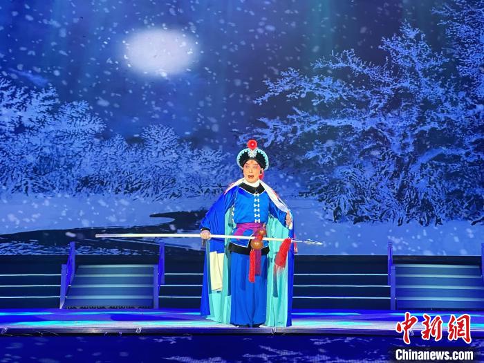 圖為戲曲演員表演京劇《野豬林·大雪飄》。李庭耀攝