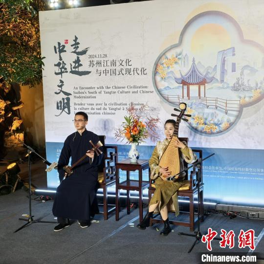 中新網(wǎng)蘇州11月29日電 (記者 鐘升)“月落烏啼霜滿天……”28日夜,蘇州古城華燈初上。以一曲蘇州評(píng)彈《楓橋夜泊》為引,“走進(jìn)中華文明——蘇州江南文化與中國(guó)式現(xiàn)代化”主題人文交流活動(dòng)在世界文化遺產(chǎn)獅子林拉開(kāi)帷幕。