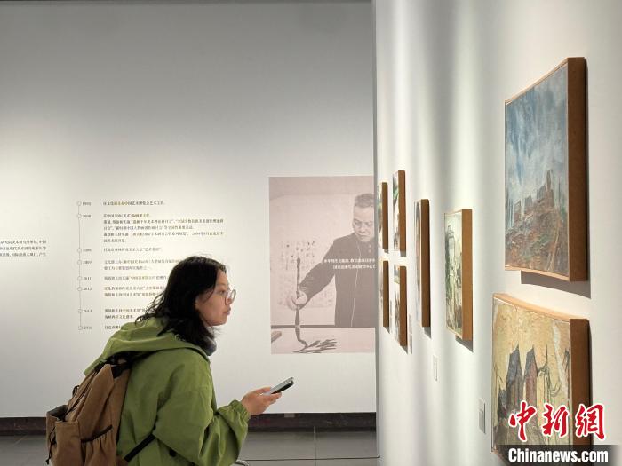 天行健——梁江“學(xué)者書畫”50年廣州展16日在廣東美術(shù)館開幕。方偉彬 攝 此次廣東美術(shù)館動用一層四個展廳布展,分“路在足下”“攀高臨遠(yuǎn)”“以學(xué)養(yǎng)書”“移情入畫”四大版塊,以300余件文獻資料、中國畫及書法作品的規(guī)模,全面呈現(xiàn)了梁江從藝50多年來的藝壇履跡、史論著述、書法作品和繪畫創(chuàng)作等專業(yè)領(lǐng)域的豐碩成果。展覽內(nèi)容豐富,有少見的文獻和照片資料、筆力雄健的書法和清新靈動的繪畫。 參加開幕式的廣東省美術(shù)家協(xié)會主席林藍表示,梁江的藝術(shù)人生與改革開放同頻共振,是廣東美術(shù)界的驕傲,也是中國美術(shù)發(fā)展的縮影。