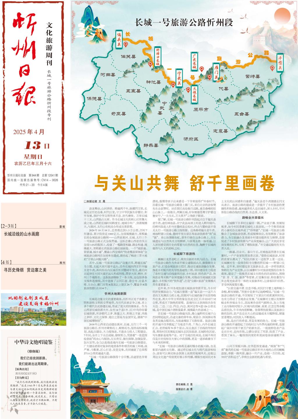 山河萬(wàn)里振興路,宏偉藍(lán)圖變通途?!邦佒怠焙汀皻赓|(zhì)”兼具的長(zhǎng)城一號(hào)旅游公路在忻州大地的山巒間蜿蜒盤旋,串聯(lián)一路風(fēng)景,融合一片產(chǎn)業(yè),造福一方百姓,延伸向“詩(shī)和遠(yuǎn)方”,孕育出全新的機(jī)遇與希望。(記者 王 晟)