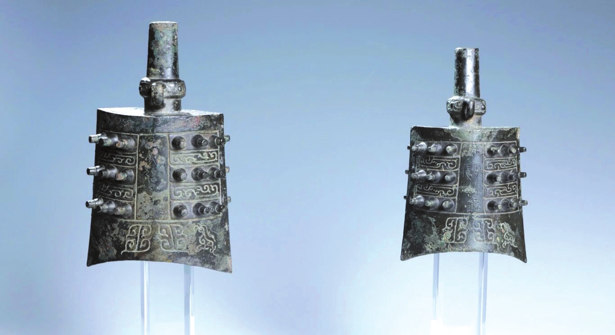 在形制上,編鐘有兩種——甬鐘和鈕鐘,最上面的平面立有“甬柱”的為甬鐘,立有“懸鈕”的則是鈕鐘。在我國(guó)已發(fā)現(xiàn)的甬鐘中,具有代表性的是晉侯蘇鐘,鑄造于西周,形制精確,音律精準(zhǔn)。鈕鐘西周晚期較多,三門峽出土的虢仲鈕鐘是目前已知最早的鈕鐘?!睹献印分杏涊d了一個(gè)關(guān)于鈕鐘的故事,孟子和學(xué)生高子親眼看到過一個(gè)夏禹時(shí)的鈕鐘,高子看到懸鈕像蟲蛀過一樣快斷了,猜測(cè)這是因?yàn)榇绥娐曇艉?、用得多?/p>