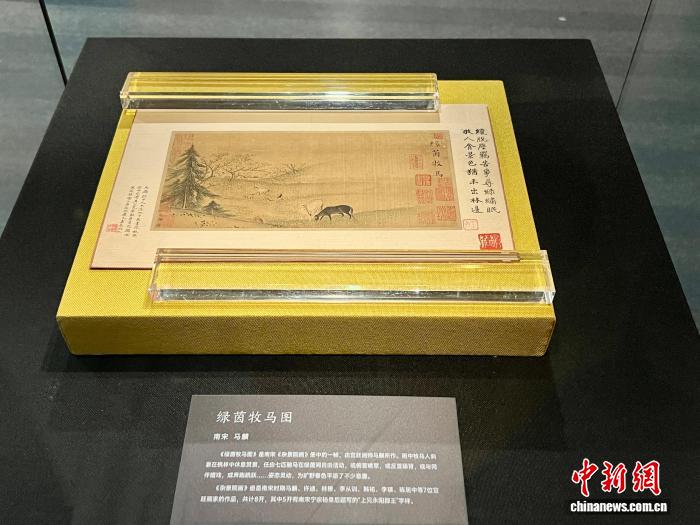 2月9日,重慶中國(guó)三峽博物館新春文化系列展覽之生肖文化展——《“福”馬上來》完成布展。圖為國(guó)家一級(jí)文物《綠茵牧馬圖》。中新社記者 鐘旖 攝