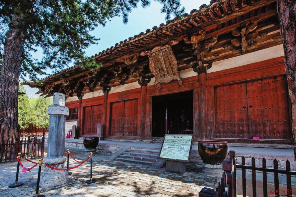 東大殿是寺院的主殿,大殿構(gòu)架由屋深柱網(wǎng)、鋪?zhàn)鲗雍臀蓓斄杭苋糠织B加而成,七鋪?zhàn)鞫饭翱v橫恣肆,威壓四方,是現(xiàn)存中國(guó)古建筑中斗拱挑出層數(shù)最多、距離最遠(yuǎn)的一個(gè)實(shí)例,也是我國(guó)集唐代建筑、彩塑、壁畫(huà)、題記、經(jīng)幢于一殿的孤例。