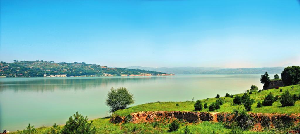 汾源泉水終年流淌,寒冬不凍,荒旱不枯,其流量為每秒0.4立方米。泉水清澈見底,水底卵石粒??杀?。汾源靈沼的外壁懸一石雕龍頭,泉水通過龍口噴涌而出,瀉入碧波蕩漾、占地近百畝的汾源湖。湖內筑有荷葉島,建有湖心亭。湖西是九龍壩,壩西又一湖名九龍湖,兩湖波光粼粼,岸柳成行。