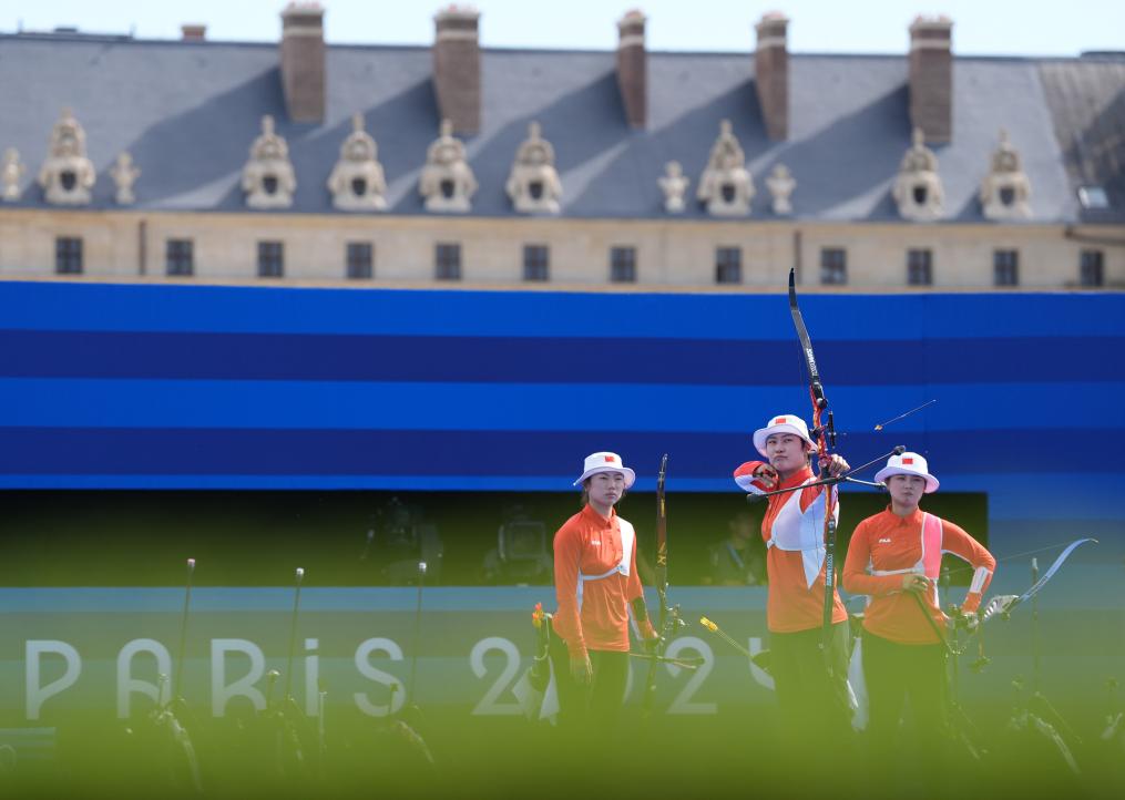 巴黎奧運(yùn)會(huì)射箭女子團(tuán)體比賽28日在榮軍院進(jìn)行。中國(guó)隊(duì)在四分之一決賽、半決賽中分別戰(zhàn)勝印度尼西亞隊(duì)和墨西哥隊(duì),與先后戰(zhàn)勝中國(guó)臺(tái)北、荷蘭隊(duì)的韓國(guó)隊(duì)會(huì)師決賽。