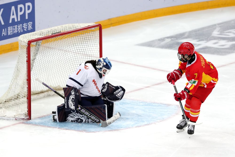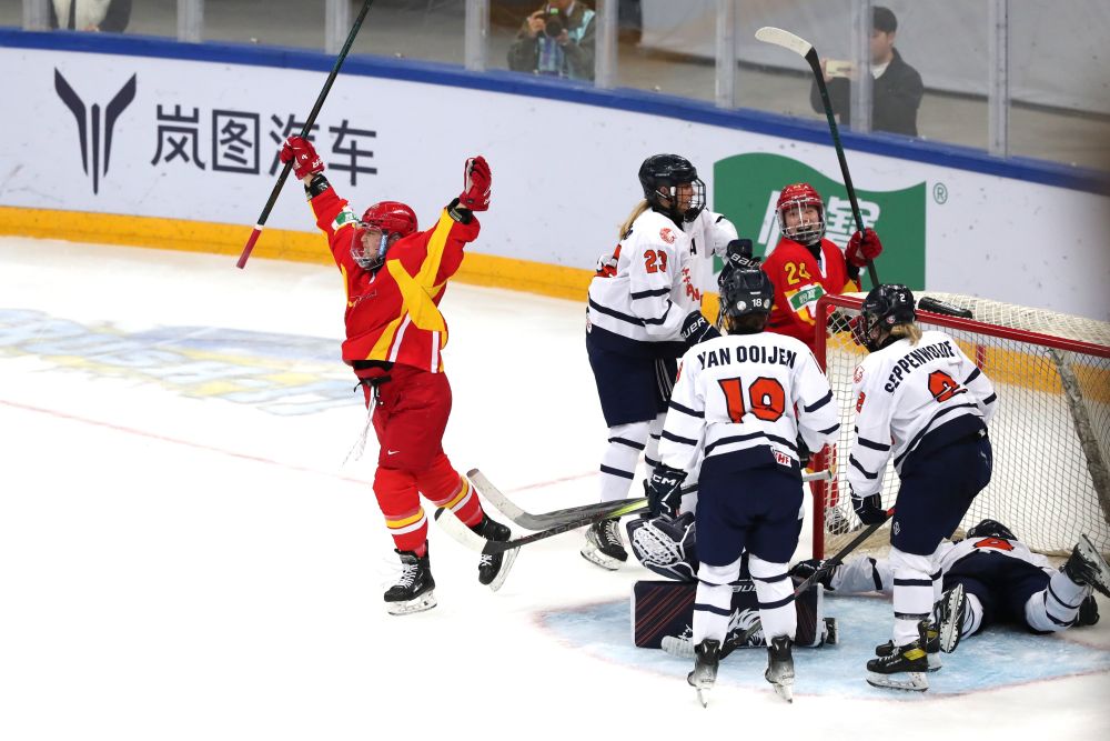 比賽伊始,雙方攻勢積極。第三分鐘,荷蘭隊打出精妙配合,科拉德門前補(bǔ)射得手,冰球從中國隊門將詹佳慧腿下滑入球網(wǎng),比分變?yōu)?:1。