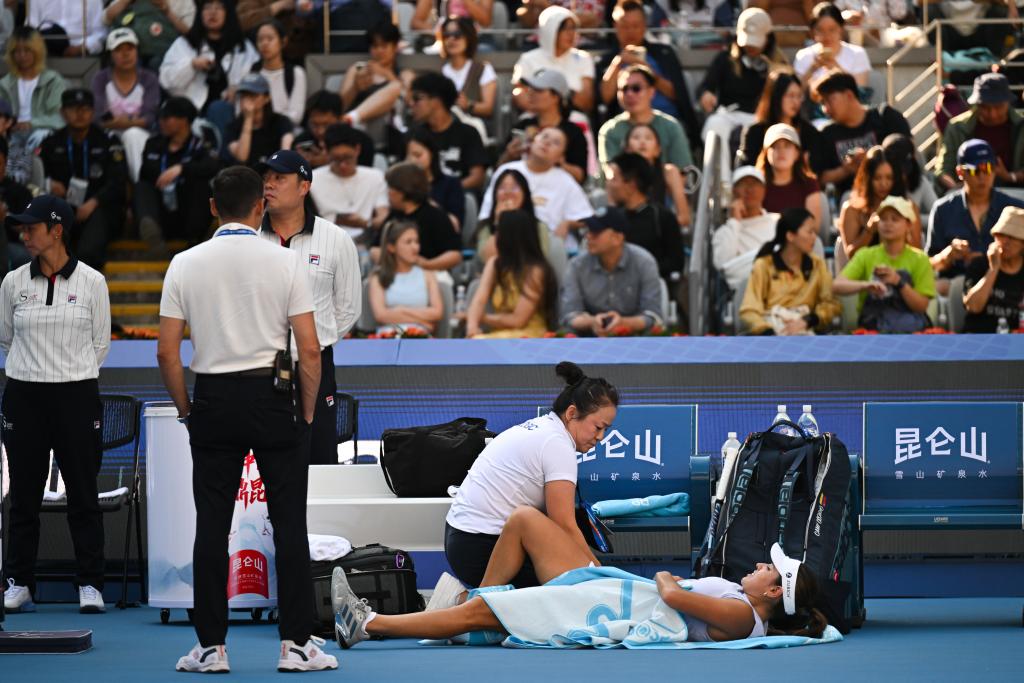 進(jìn)入第三盤,諾斯科娃先聲奪人,很快建立3:0的領(lǐng)先優(yōu)勢(shì)。局間休息時(shí),醫(yī)務(wù)人員上場(chǎng)與鄭欽文交流。短暫溝通后,鄭欽文選擇退賽,比賽就此結(jié)束。