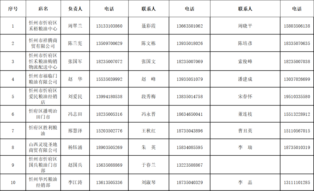 忻府區(qū)保供糧油門店聯(lián)系方式和供應區(qū)域表