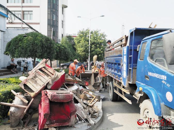 8月2日,忻州城區(qū)環(huán)衛(wèi)工人正在清運(yùn)垃圾。今年是第六屆創(chuàng)建全國(guó)文明城市評(píng)選決勝之年。在市創(chuàng)建全國(guó)文明城市總指揮部的統(tǒng)一協(xié)調(diào)指揮下,結(jié)合當(dāng)前正在開(kāi)展的城區(qū)“兩下兩進(jìn)兩拆雙修一提升”專項(xiàng)整治行動(dòng),近日,各單位和居民小區(qū)清潔環(huán)境,助力創(chuàng)建全國(guó)文明城市。市市容環(huán)境衛(wèi)生管理處組織環(huán)衛(wèi)工人和車輛對(duì)指定堆放的垃圾進(jìn)行了集中清運(yùn)。 張劍雄 攝