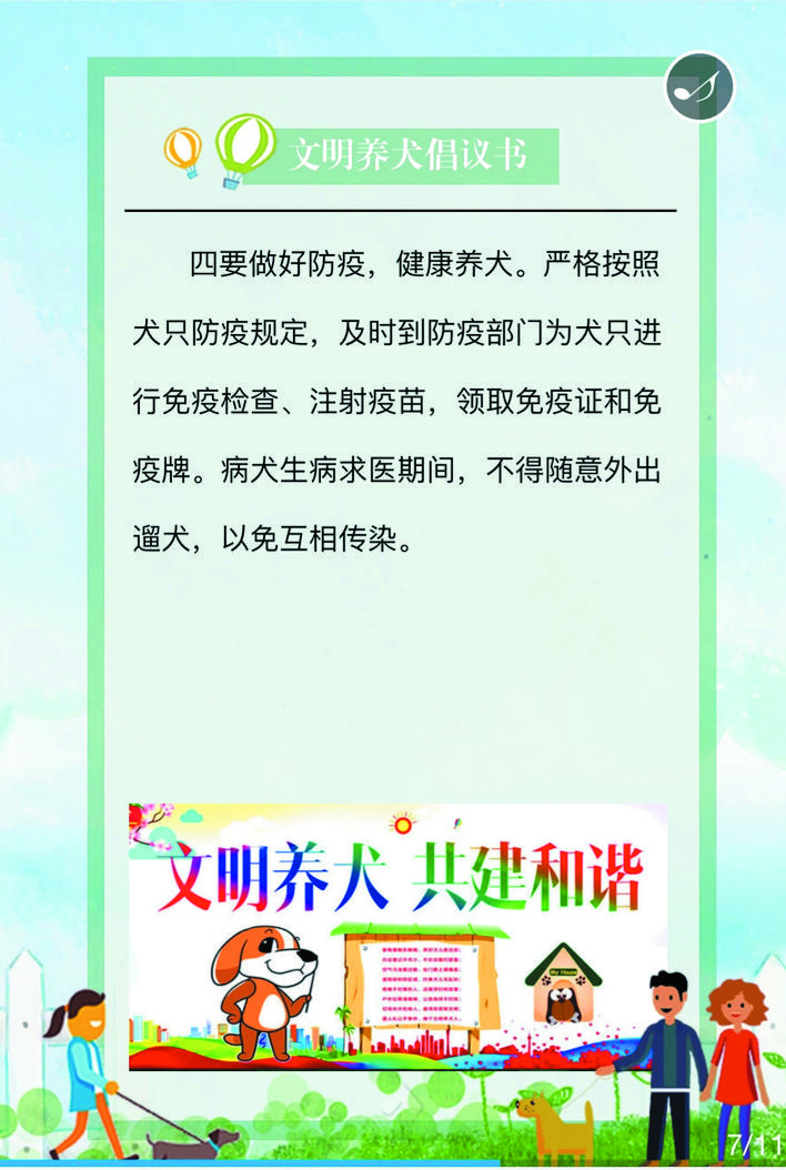 本報(bào)訊 為進(jìn)一步加強(qiáng)犬只管理,保障轄區(qū)群眾人身安全,維護(hù)社會(huì)公共秩序和市容環(huán)境衛(wèi)生,近日,市公安局忻府分局發(fā)布了《文明養(yǎng)犬公告》,并組織開展了以“杜絕犬患、促進(jìn)和諧”為主題的文明養(yǎng)犬專項(xiàng)宣傳活動(dòng)。 在宣傳活動(dòng)中,民警深入街道、小區(qū)、商鋪等人員密集場(chǎng)所,在宣傳欄懸掛文明養(yǎng)犬宣傳標(biāo)語、張貼文明養(yǎng)犬倡議書等宣傳資料,向轄區(qū)居民詳細(xì)講解《忻州市養(yǎng)犬管理?xiàng)l例》《文明養(yǎng)犬公告》的具體內(nèi)容,引導(dǎo)養(yǎng)犬群眾主動(dòng)辦理養(yǎng)犬登記證、出門為犬只佩戴犬牌、定期為犬只注射疫苗,做到依法養(yǎng)犬、文明養(yǎng)犬、衛(wèi)生養(yǎng)犬、健康養(yǎng)犬、安全養(yǎng)犬?;顒?dòng)中,該局共懸掛宣傳標(biāo)語50條,張貼文明養(yǎng)犬倡議書500份,向群眾發(fā)放宣傳資料3500人/份。 《文明養(yǎng)犬公告》包含十一項(xiàng)主要內(nèi)容,具體是:一、養(yǎng)犬人應(yīng)當(dāng)遵守有關(guān)法律、法規(guī),尊重社會(huì)公德,維護(hù)公共秩序,不得損害社會(huì)公共利益和他人的合法權(quán)益;二、養(yǎng)犬管理按照重點(diǎn)管理區(qū)和一般管理區(qū)實(shí)行分區(qū)管理。忻府轄區(qū)外環(huán)線范圍以內(nèi)為養(yǎng)犬重點(diǎn)管理區(qū)。其他區(qū)域?yàn)轲B(yǎng)犬一般管理區(qū);三、養(yǎng)犬實(shí)行狂犬病免疫制度。犬只出生滿三個(gè)月或者免疫期滿的,養(yǎng)犬人應(yīng)當(dāng)攜犬只到獸醫(yī)主管部門公布的犬只免疫網(wǎng)點(diǎn)接種狂犬疫苗;四、在重點(diǎn)管理區(qū)內(nèi)養(yǎng)犬實(shí)行責(zé)任書制度。村(居)民委員會(huì)或者社區(qū)物業(yè)管理機(jī)構(gòu)應(yīng)當(dāng)與養(yǎng)犬人簽訂養(yǎng)犬責(zé)任書,明確有關(guān)文明養(yǎng)犬的責(zé)任事項(xiàng);五、在重點(diǎn)管理區(qū)內(nèi)養(yǎng)犬實(shí)行登記制度。養(yǎng)犬人應(yīng)當(dāng)自取得免疫證明之日起三十日內(nèi),到居住地公安派出所辦理養(yǎng)犬登記;六、在重點(diǎn)管理區(qū)內(nèi),禁止飼養(yǎng)、繁殖和經(jīng)營(yíng)禁養(yǎng)名錄內(nèi)的烈性犬和大型犬(導(dǎo)盲犬除外);禁止開辦犬類養(yǎng)殖場(chǎng);七、在重點(diǎn)管理區(qū)內(nèi)攜帶犬只出戶,應(yīng)當(dāng)遵守下列規(guī)定:(一)為犬只佩帶犬牌、束牽引帶,牽引帶長(zhǎng)度不得超過兩米,在擁擠場(chǎng)合自覺收短牽引帶。(二)具有完全民事行為能力的人牽引。(三)主動(dòng)避讓老年人、殘疾人、孕婦和兒童。(四)乘坐電梯,應(yīng)當(dāng)避開高峰期,征得電梯內(nèi)其他人的同意,佩戴嘴套或裝入犬籠、犬袋,并主動(dòng)避讓他人。(五)及時(shí)清除犬只排泄的糞便。(六)不得攜犬進(jìn)入設(shè)有犬類禁入標(biāo)志的公園、廣場(chǎng)等公共場(chǎng)所。(七)不得攜犬乘坐大型公共交通工具,攜犬乘坐出租汽車時(shí),須征得司機(jī)同意。(八)養(yǎng)犬不得干擾他人正常生活,不得放任、驅(qū)使犬只恐嚇、攻擊他人,影響他人休息的,養(yǎng)犬人應(yīng)當(dāng)采取措施予以制止;八、凡流浪犬或無人牽領(lǐng)的犬只,視為無主犬只予以收容;九、市民養(yǎng)犬應(yīng)當(dāng)按規(guī)定對(duì)所養(yǎng)犬只注射狂犬疫苗、定期檢疫。犬只出現(xiàn)狂犬癥狀的,養(yǎng)犬人應(yīng)當(dāng)及時(shí)采取捕滅措施,并向農(nóng)業(yè)部門報(bào)告,危害公共安全的,應(yīng)及時(shí)報(bào)告公安部門;十、違反有關(guān)規(guī)定將依據(jù)《忻州市養(yǎng)犬管理?xiàng)l例》、《中華人民共和國(guó)治安管理處罰法》等法律進(jìn)行處罰;十一、廣大市民應(yīng)積極抵制不文明養(yǎng)犬行為。對(duì)違反本通告規(guī)定的養(yǎng)犬行為,任何單位和個(gè)人都有權(quán)批評(píng)、勸阻,或者舉報(bào)。 文明養(yǎng)犬,從我做起。讓我們共同努力,心往一處想、勁往一處使,為忻州這座千年之城戴上熠熠閃光的文明桂冠。(魯明強(qiáng) 常曉蓉) (責(zé)任編輯:梁艷) |