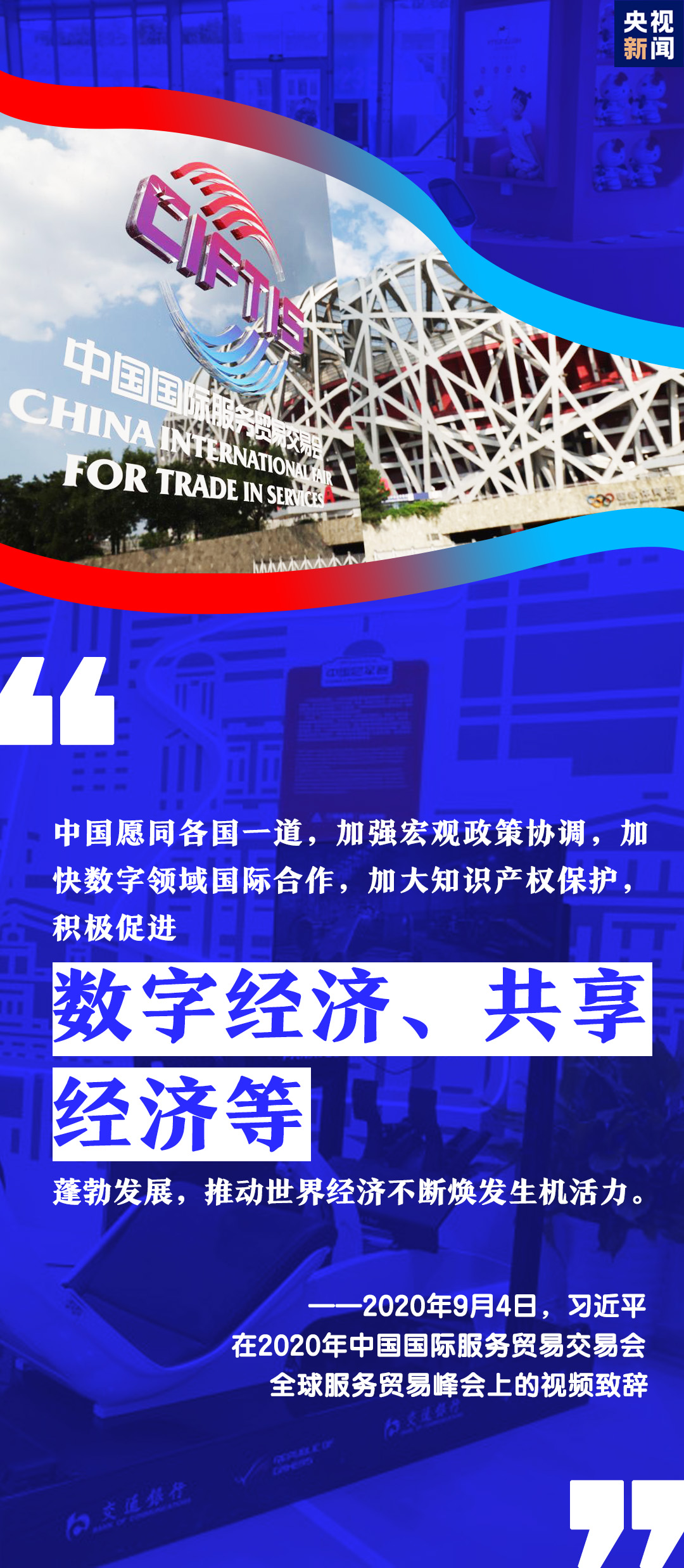 9月4日,2020年中國(guó)國(guó)際服務(wù)貿(mào)易交易會(huì)全球服務(wù)貿(mào)易峰會(huì)在北京開(kāi)幕。習(xí)近平主席通過(guò)視頻方式在峰會(huì)上致辭。