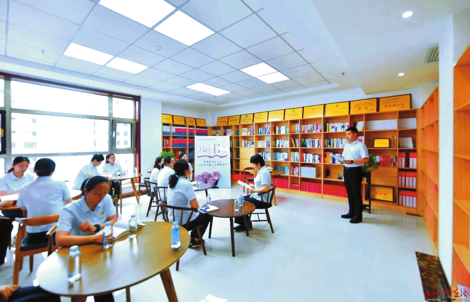 近日,市聯(lián)社工會(huì)舉辦2022年“玫瑰書香”女職工主題閱讀會(huì),為愛好讀書的女職工搭建文學(xué)交流平臺(tái)。在活動(dòng)現(xiàn)場,女職工代表飽含深情地誦讀了《習(xí)近平的七年知青歲月》《魯迅經(jīng)典全集》《之江新語》《蒼涼深處等春來》等書中的文章,通過情感和聲音詮釋文字背后的精神力量,展示新時(shí)代女職工風(fēng)采。(任飛鴻 攝)