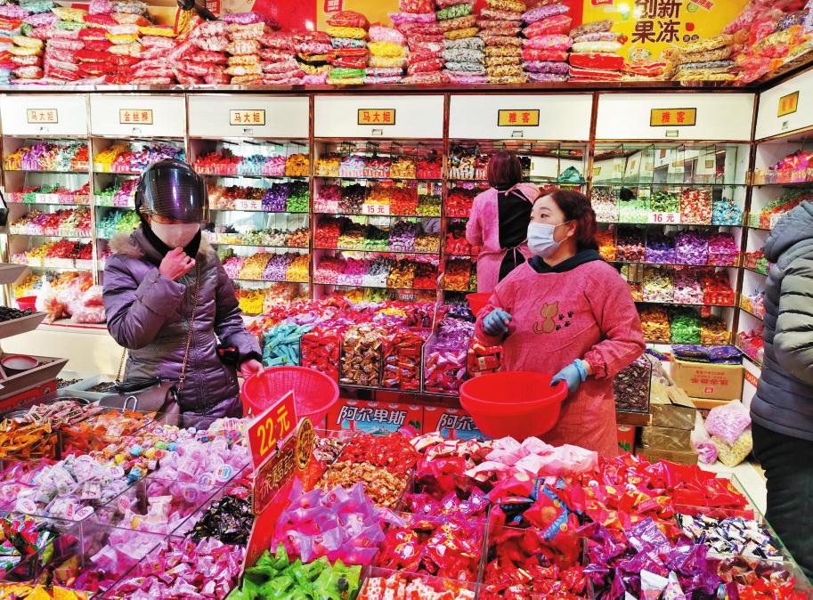 忻州各大商家提前籌劃、備足貨源,為市民歡度新春佳節(jié)做好了準備。忻州小食品綜合批發(fā)市場是城區(qū)一家經營多年的市場,總占地面積12000平米,分為四個區(qū)域,現(xiàn)有商戶152家,經營有上萬種商品。1月10日,記者走進忻州小食品綜合批發(fā)市場,看到前來購物的市民都戴著口罩、包裹嚴實,盡管是三九寒冬,卻絲毫阻擋不住市民購年貨的熱情。