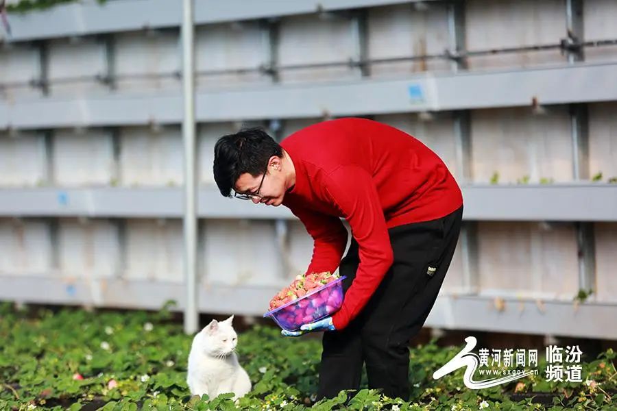 日前,山西省臨汾市堯都區(qū)北練李村果中果采摘園公司,果農(nóng)采摘草莓準(zhǔn)備銷售。