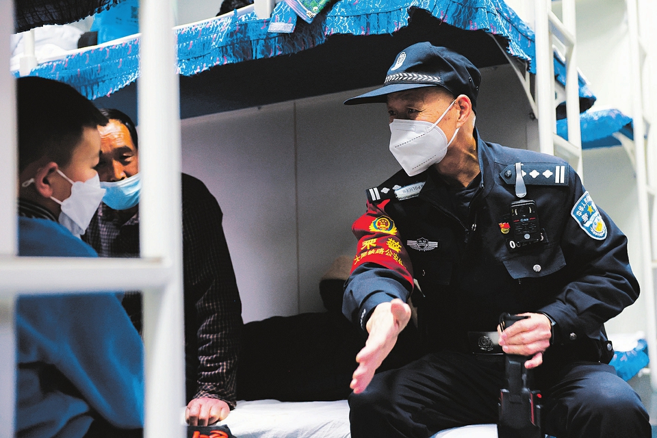 6時(shí)20分,列車緩緩駛出,老屈開始對(duì)整列車廂進(jìn)行巡視,在8號(hào)車廂,看見有人將羽絨衣掛在衣帽鉤上,老屈現(xiàn)場(chǎng)演示了小偷用自己衣服做遮擋和掩護(hù)盜竊的作案伎倆,并叮囑大家看管好自己隨身攜帶的物品,以免丟失?!氨U下每偷陌踩?,是乘警的天職,在車上,我們要不斷地對(duì)重點(diǎn)部位進(jìn)行檢查,對(duì)旅客進(jìn)行安全宣傳,尤其是到了春運(yùn)時(shí)候,我更得做好本職工作,讓每一個(gè)乘車旅客平安回家?!鼻A颊f(shuō)道。