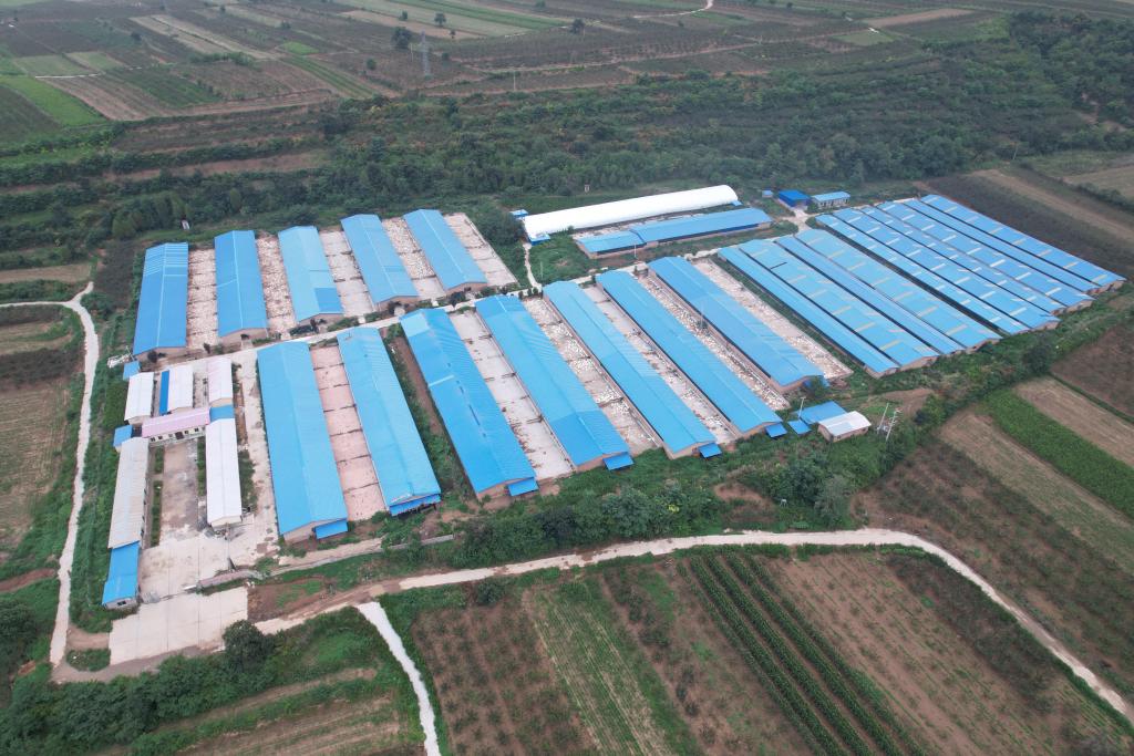 陜西省潼關縣歐家城村占地120畝的肉鴨養(yǎng)殖場航拍照片。(受訪者供圖)