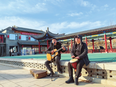 圖④音樂(lè)愛好者在陽(yáng)泉市郊區(qū)蔭營(yíng)古鎮(zhèn)街邊演唱。