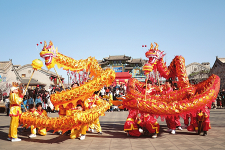 圖①喬家大院文化園區(qū),舞動(dòng)的彩龍時(shí)而盤旋,時(shí)而飛舞。