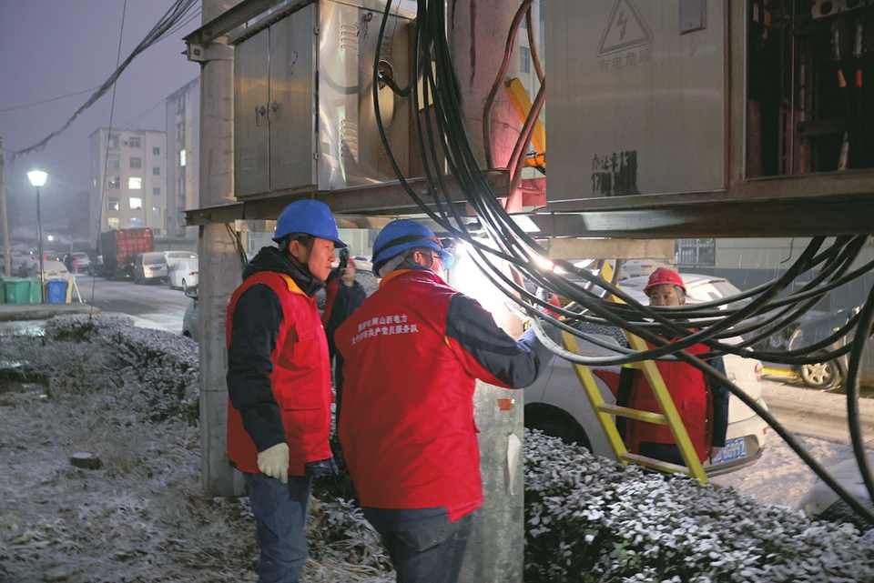 1月26日,國網(wǎng)山西電力(長治沁縣)太行黎明共產(chǎn)黨員服務(wù)隊(duì)工作人員正對供電線路和設(shè)備進(jìn)行巡檢。張高峰 張玉林?jǐn)z