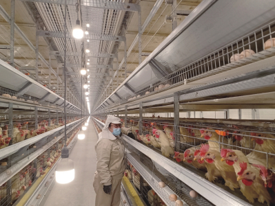 穿上無菌服,陳璐帶記者參觀雞舍。墻面是彩鋼夾芯板,耐腐、防火,保溫性能卓越,有效保障雞舍一年四季溫度恒定。雞籠表面是進(jìn)口鋁鋅合金涂層,顯著降低破蛋率、污蛋率。雞舍內(nèi)安裝有智能環(huán)境控制系統(tǒng),實(shí)時(shí)顯示和控制雞舍內(nèi)溫度、濕度、二氧化碳濃度、光照、通風(fēng)等環(huán)境指標(biāo)。“一旦某一項(xiàng)指標(biāo)低于或者超過設(shè)定范圍,系統(tǒng)就會(huì)啟動(dòng)各項(xiàng)設(shè)備,直至指標(biāo)恢復(fù)正常?!标愯凑f。
